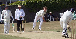 The first ball of the season, Carnforth pro Gareth Pedder to Preston opener Sajid Patel