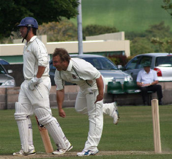 Barrow captain Daryl Wearing bowling against Staffordshire |