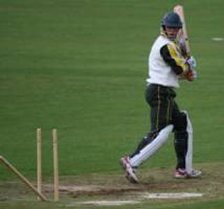 Friedel de Wet is bowled by Darwen skipper Andrew Cook |