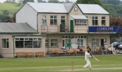 Ikram Ullah passed his fifty with a series of firm low drives all around the wicket and looked set for a century until he was unluckily run out backing up at the non-striker's end. A straight drive from Gareth Ashburner was deflected onto the stumps by bowler Javaid Hussain with the Kendal skipper stranded. He had made 65 off 73 balls with seven fours.