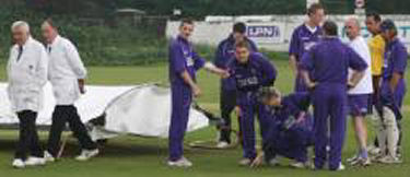 After a delayed start Lancaster, invited to bat by Morecambe captain Tommy Clough, were bowled out for 101 in the last over. Brendan Hetherington and Mike Stevens top-scored, each making 17. Graeme Cassidy took four for 16 and Gareth Pedder 3 for 13. Rain stopped play with Morecambe 10 for no wicket after 2 overs in reply.