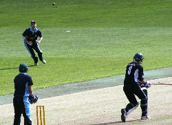 Hunte was run out in bizarre circumstances by a superb throw by Ben Barrow. After a Scott Clement no-ball Hunte thrashed the following delivery, a free hit, down Barrow's throat at deep mid-wicket and was left stranded by a fine piece of fielding after a misunderstanding with Howarth.