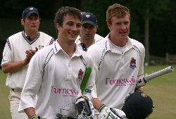 Kendal's Kiwi international pro Jamie How blasted a superb 131 in his side's Readers Cup win at Morecambe. How hit 12 fours and six sixes and faced just 98 balls. He shared in two century partnerships; 109 for the first wicket with Gary Baker (34) and 100 for the third with Gareth Ashburner (26).