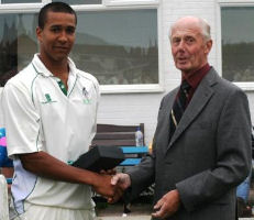 Liam Hurt receives his Man of the Match award from League President Brian Standing |
