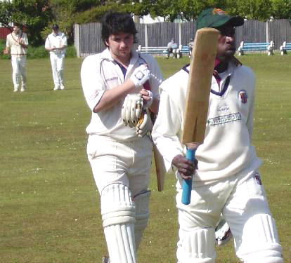 Then came a partnership of 90 runs between Hunte and Gareth Ashburner who played his part admirably in getting the strike to his partner and keeping the scoreboard ticking over at the same time. He made 19 of the runs before he played Blundell straight to Fish at point and it was 154-5. David Fallows quickly holed out to Adam Sharrocks before he had scored and that was 160-6 and it was 165-7 when Tony Yasin was caught by John Wright off Blundell for four.