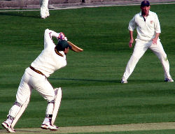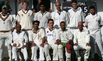 Roberts took 3 for 24 in 12 overs, including the prize wicket of Batticciotto, superbly caught at slip first ball by Rehman Shah for a duck. Craig Walmsley (38) and debutant Alex Atkinson (31) had put on 51 for the opening stand but thereafter only skipper Chris Parry (37 not out) provided any sustained resistance. It was a fitting statistic of the accuracy of Bilal Asad's bowling that he claimed three lbw decisions in addition to three clean bowled.