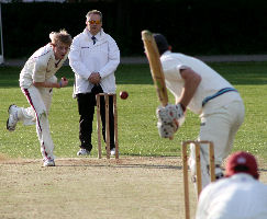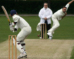 Preston new boy Andy Roberts bowls to Chris Parry |
