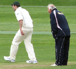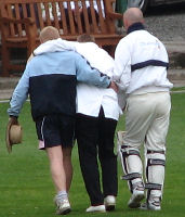 The versatile Mr Moore had an eventful afternoon, filling in as square leg umpire for most of the game after Dave Whitworth was unluckily struck on the shin by a direct hit from Blackpool sub-pro Peter Skuse. The photos are the work of Kendal's answer to David Bailey, Mr David Sykes.