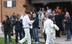 St Annes heroes Hettiarachchi and Baer are cheered off |