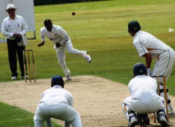 Chorley's Billy Smith bowls to Atiq Uz-Zaman |