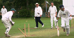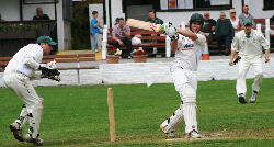 Abbas bowled unchanged for 21 overs and collected 7/30 with good support from the promising Matthew Grindley who took 2/9 off 7.5 overs. Kieran Moffatt hit a valiant undefeated 28 but Charles Boucher took a fine catch to dismiss Liam Moffatt off Grindley and win the game for Andy Kellett's side.