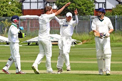Fleetwood Professional Ian Holland taking a seven wicket haul with figures of 7-20. Sam Bell also weighing in with figures of 3-14.