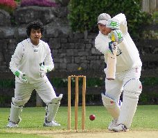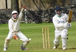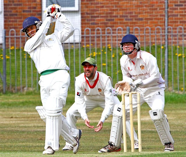 Netherfield 2nd's skipper Steven Wilson in batting action as Rik Ghosh keeps wicket for Lancaster