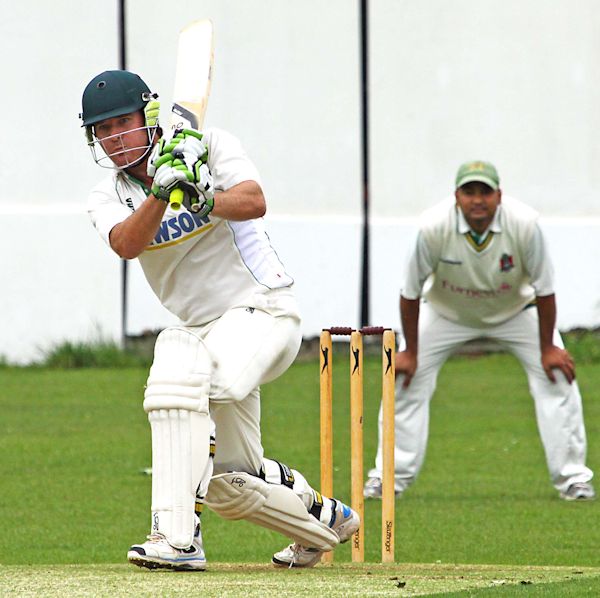 Jamie How hits a four on his way too 66 for Kendal (Photo courtesy of Tony North) |