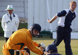 Catterall was caught by Zaman Khan off Chris Wade for 26, Moulton run out by Jordan Clarke for 46, Ian Oakes bowled by Wade first ball and Stu Naden bowled by Zaman Khan for 1. Wade finished with three for 23 having also bowled Smuts.