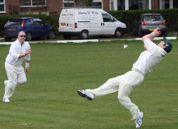 Carnforth's Adam Cowperthwaite pulled off a magnificent catch in the covers to dismiss Preston pro Saeed Bariwala for a third-ball duck off the bowling of Gareth Pedder.