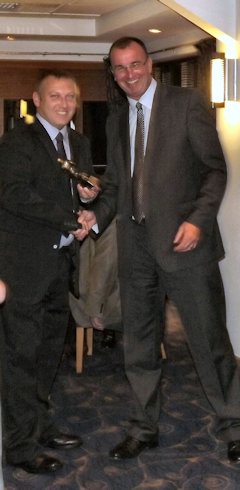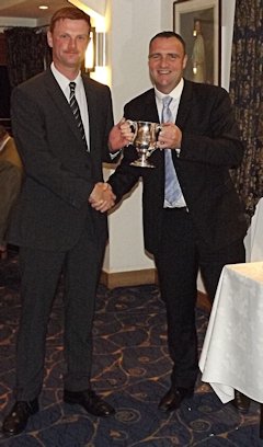 Neil Pullen presents the Division 2 Runners Up Readers trophy to Duncan Whalley of St Annes |