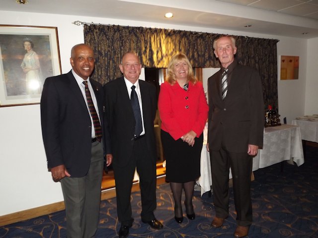 John Holder presents the Division 2 Championship Trophy to Ian Farrington the Leyland captain