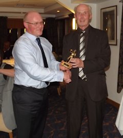 Tommy Clough accepts the Divison 2 Fair Play Award won by Morecambe CC |