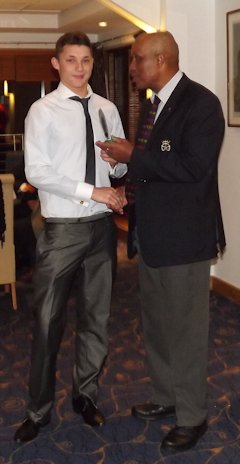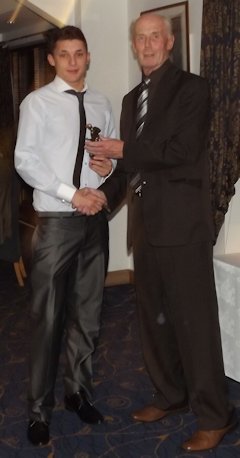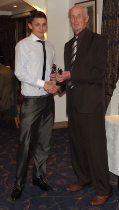 Leyland's Daniel Lamb receives the Young Player Award from John Holder |