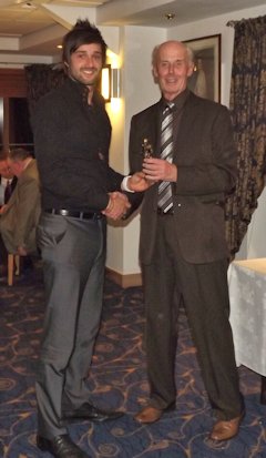 Edward Melling accepting his Wicketkeeping Award from Brian Standing |