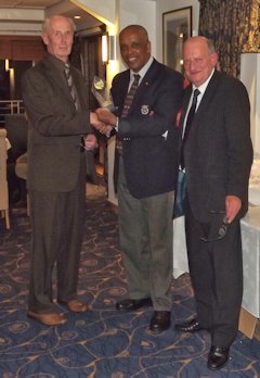 Outstanding Services to the Northern Premier Cricket League Award winner Brian Standing, John Holder and League Chairman Norman Poole |