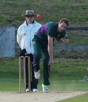 Greg Hall bowling well then bowled Nick Lewthwaite for 5, before taking the crucial wicket of Michael Price for 23 off 24 balls with John Huck on hand to take the catch, Hall ending with figures of 3-17.