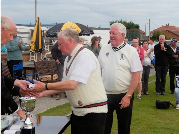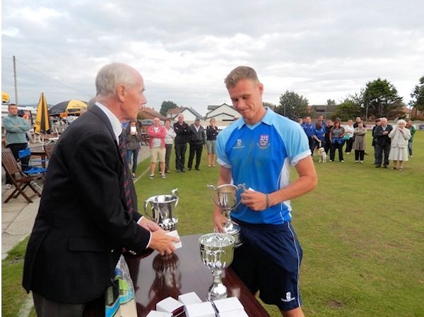 Josh Bohannon Man Of the Match receiving his award from League Pesident Brian Standing and congratulations from League Chairman Norman Poole |