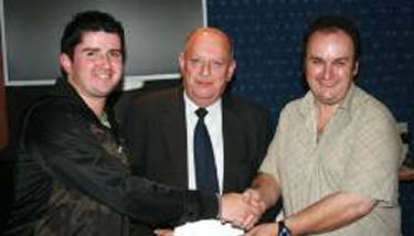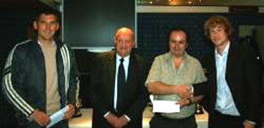 Duncan Whalley accept's the prize on behalf of Atiq from sponsor Matthew Castle with Norman Poole the League chairman looking on |